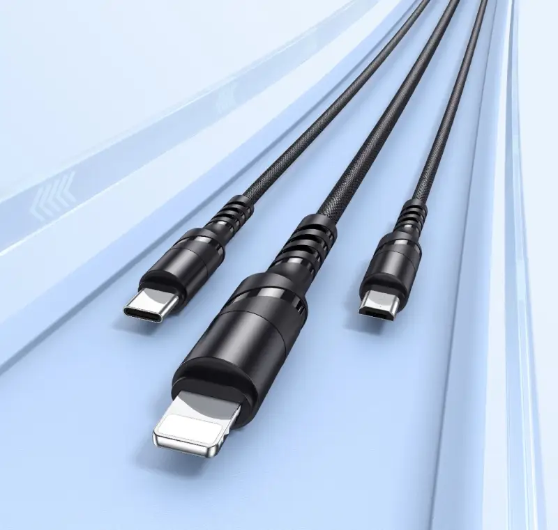 כבל טעינה 3 ב‑1 מהיר 15W בעמידות גבוהה