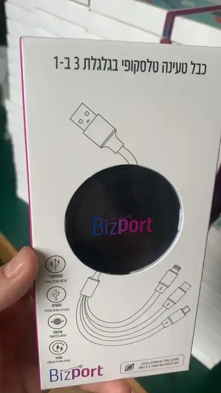 קומפקטי – 3 סוגים ב 1 העברת נתונים מהירה אחסון טלסקופי טעינה מהירה ובטוחה אורך 110 ס"מ תואם לממשק אפל, אנדרואיד, Type-C. צבעים: שחור, לבן